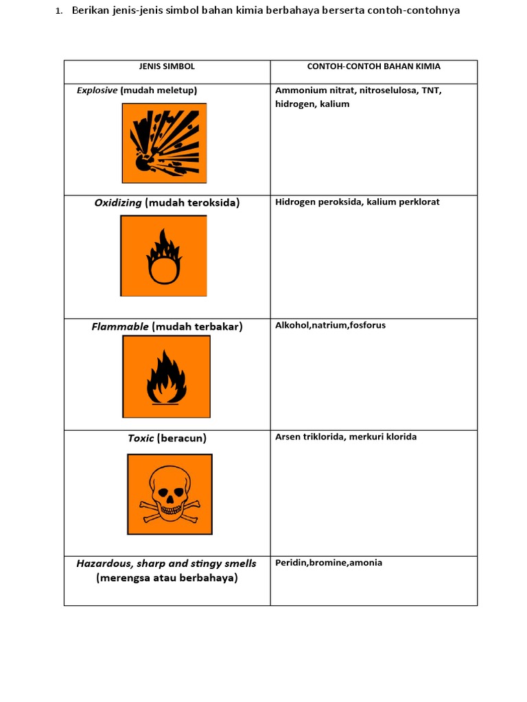 Pasangan Simbol Bahan Dan Contoh Bahan Kimia Yang